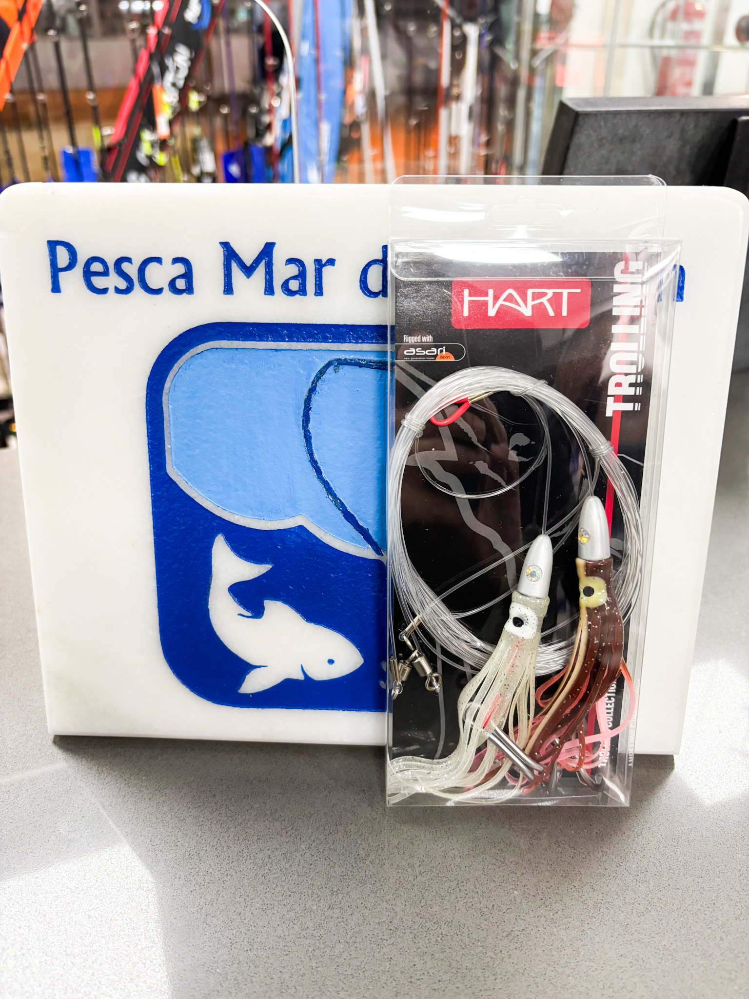 Bajos montados de pulpo con cabeza de nácar plomada para pesca a cacea de túnidos. Montados con monofilamento japonés ASARI de alta calidad y anzuelos dobles japoneses de acero inoxidable (ASARI CAND)