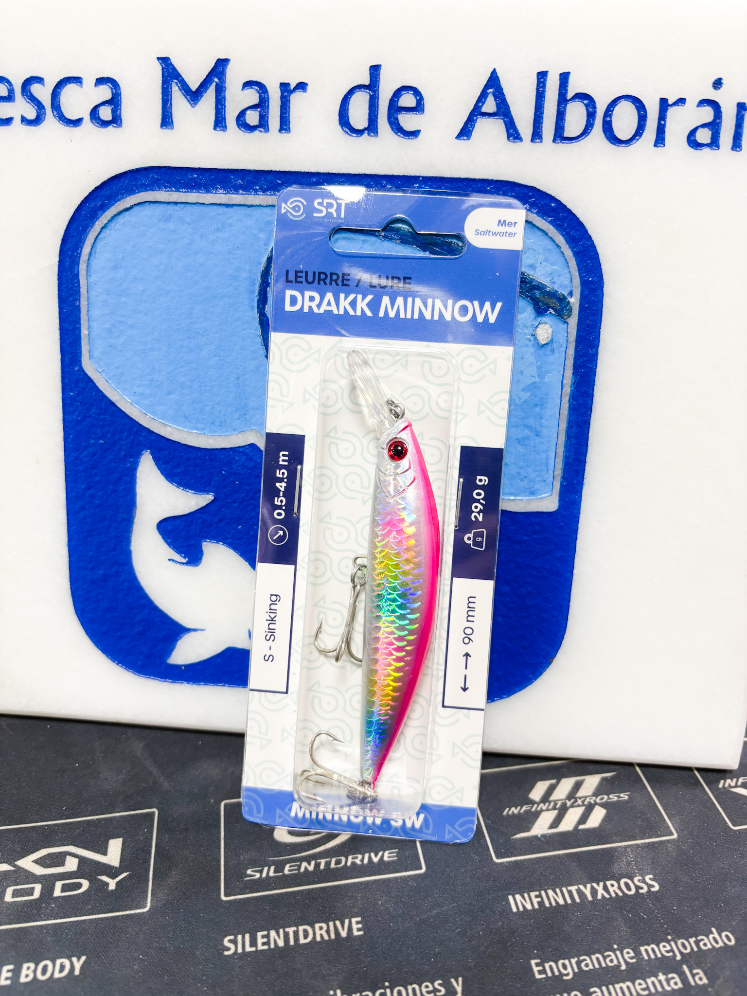Señuelos tipo minnow SW, ideal para la pesca de lubina, robalo o baila y otros voraces de mar o agua dulce. Incorpora sonajero. Longitud de 90 mm,y peso de 29gr. Anzuelos triples niquelados ultra afilados. Profundidad de nado de 0,5-4,5m. Se puede utilizar para curricán más cercano a la superficie por tener menos babero